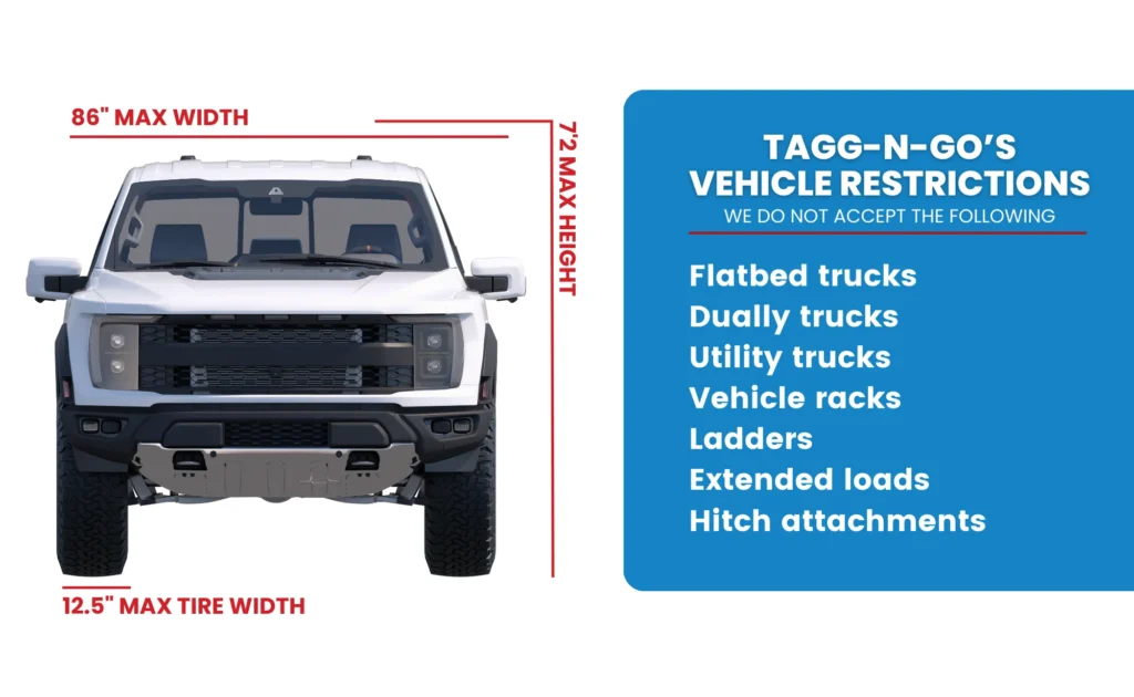 Fleet Accounts are available for businesses with a minimum of five vehicles. Prepaid Annual Pass and Washbook accounts are the only Fleet options available. Fleet pricing is based on volume and may include discounts for larger fleets. Pricing is subject to change with 30 days’ notice. All accounts are invoiced to the primary account email, and can be paid by Credit Card, ACH, or check. Accounts that are 30 days past due will be suspended until the account is paid in full. All sales are final. Refunds will not be issued for partial or unused services unless at Tagg-N-Go’s discretion in exceptional cases such as billing errors or service faults. All fleet vehicles must meet our safety and size standards. Vehicles with incompatible modifications or accessories may be declined.